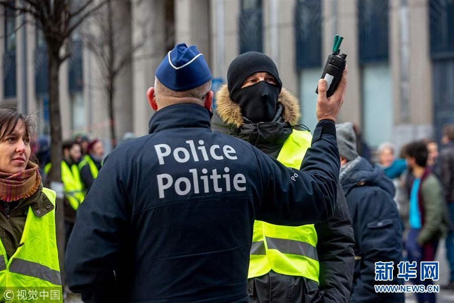 當地時間12月15日,比利時布魯塞爾,當地爆發“黃背心”抗議活動。 (圖片來源:視覺中國)