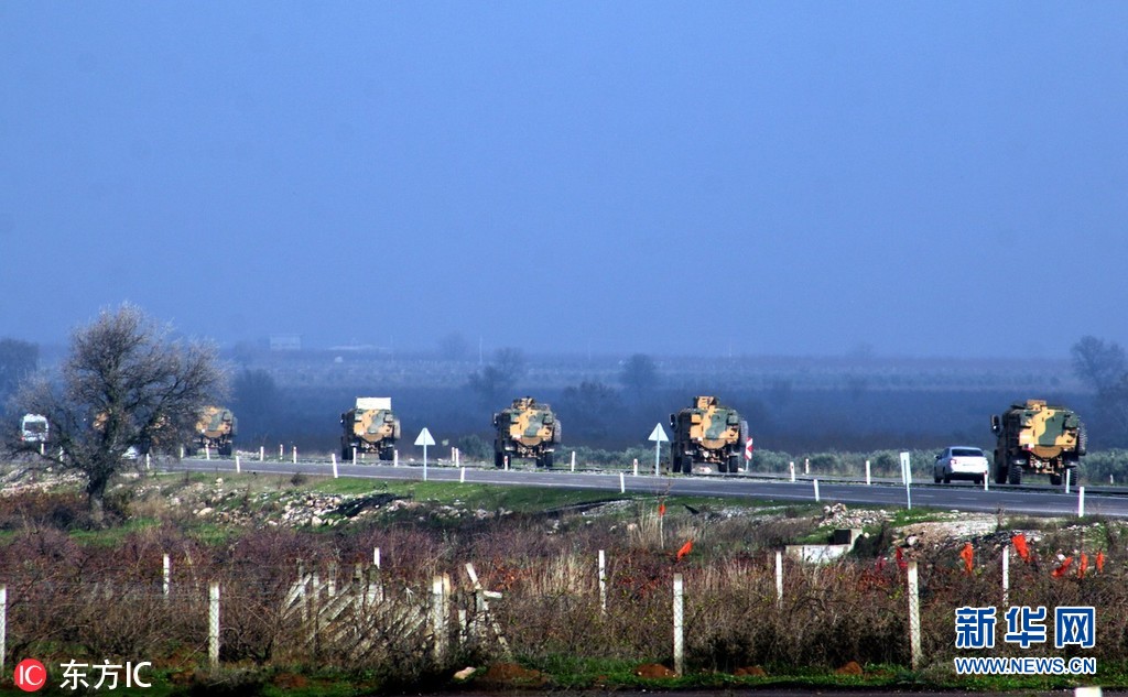 當地時間2018年12月24日,土耳其哈塔伊,土耳其裝甲車被派往敘利亞邊境的基利斯地區,增援邊境部隊。(圖片來源:東方IC)