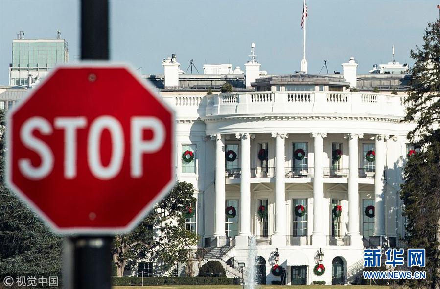 當地時間2018年12月27日,美國華盛頓,白宮。美國共和黨一名助理表示,眾議院不會在周五安排任何投票,這意味著美國政府部分關閉的狀態將至少持續至本周末。(圖片來源:視覺中國)