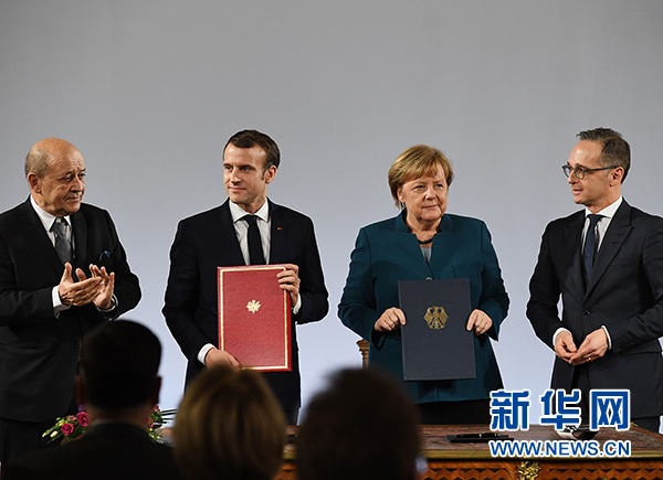 新華社柏林1月22日電(記者任珂 張遠)德國總理默克爾和法國總統(tǒng)馬克龍22日在德國西部城市亞琛簽署《德國和法國關(guān)于合作和一體化的條約》(《亞琛條約》),著重強調(diào)兩國的合作和推動歐洲一體化建設(shè)。