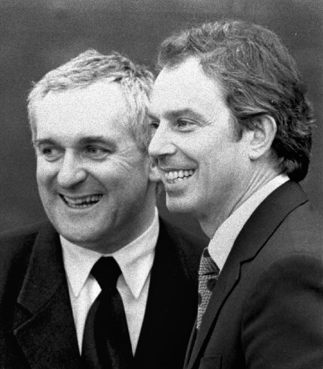 當(dāng)時(shí),代表愛爾蘭和英國政府簽署協(xié)議的分別是時(shí)年47歲的愛爾蘭總理伯蒂·埃亨和45歲的英國首相托尼·布萊爾。