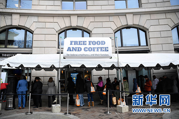 政府“停擺”依舊,冬寒并未遠走,華盛頓哥倫比亞特區的道路上行人稀少、商戶門廳冷清,但在國家廣場附近一處街角卻見人排起了長隊。