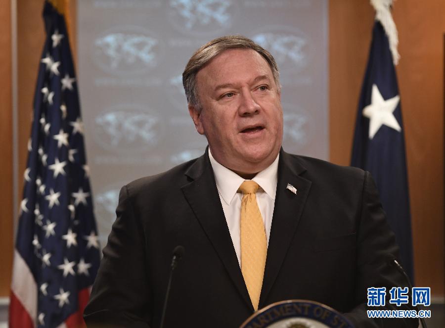 2月1日,在美國(guó)華盛頓,美國(guó)國(guó)務(wù)卿蓬佩奧在國(guó)務(wù)院記者會(huì)上講話。 新華社記者 劉杰 攝