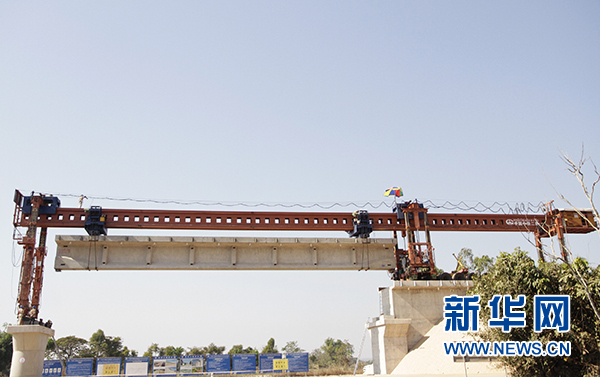 這是2月9日在老撾首都萬象拍攝的楠科內河特大橋架梁施工現場。新華社發(臧衡 攝)