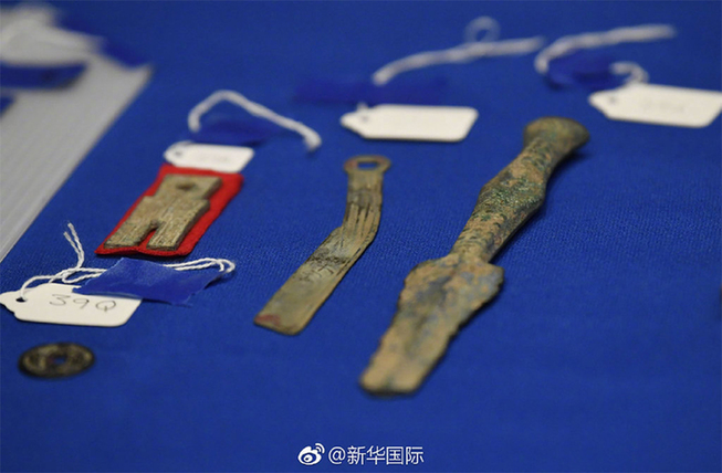 此次返還的中國流失文物藝術品時間跨度長,從新石器時代直至清代,涉及石器、玉器、青銅器、陶器、錢幣、木雕建筑構件等多個門類,多為中國古代墓葬隨葬器物。當天儀式現場展示了其中20余件(套)文物。