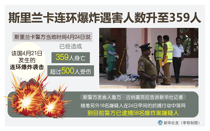 新華社科倫坡4月24日電(記者朱瑞卿 唐璐)斯里蘭卡警方24日說,該國21日發生的連環爆炸襲擊已經造成359人身亡、超過500人受傷。