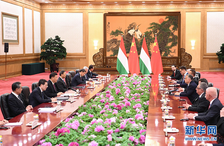 習近平指出,2017年,我和總理先生共同宣布兩國建立全面戰(zhàn)略伙伴關(guān)系,中匈關(guān)系進入“換擋提速”的歷史新階段。今年是中匈建交70周年。中方期待同匈方一道努力,推動兩國全面戰(zhàn)略伙伴關(guān)系邁向新高度。雙方要保持高層交往熱度,做好政治引領;提升互尊互信水平,深化戰(zhàn)略認同;加大務實合作力度,實現(xiàn)互利共贏;拓寬人文交流廣度,促進民心相通。下階段,我們要落實好匈塞鐵路等“一帶一路”框架內(nèi)合作,爭取更多實質(zhì)成果。中國-中東歐合作是中歐關(guān)系重要組成部分,希望匈方為此發(fā)揮更大作用。
