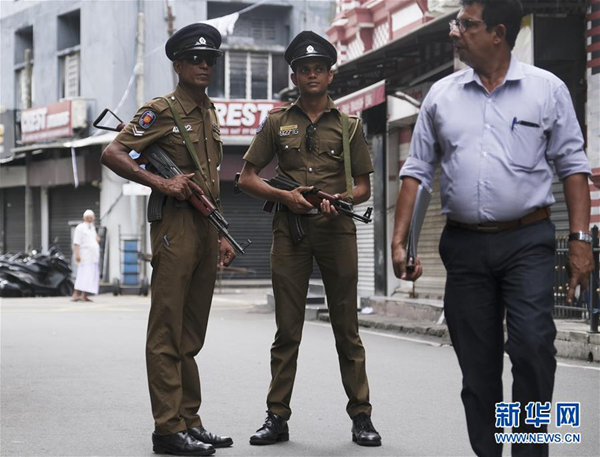 4月26日,在斯里蘭卡科倫坡,警察在城市街道上警戒。新華社發(fā)(王申攝)