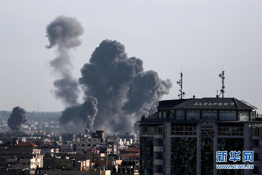 5月4日,以軍轟炸造成的濃煙在加沙城升起。新華社發
