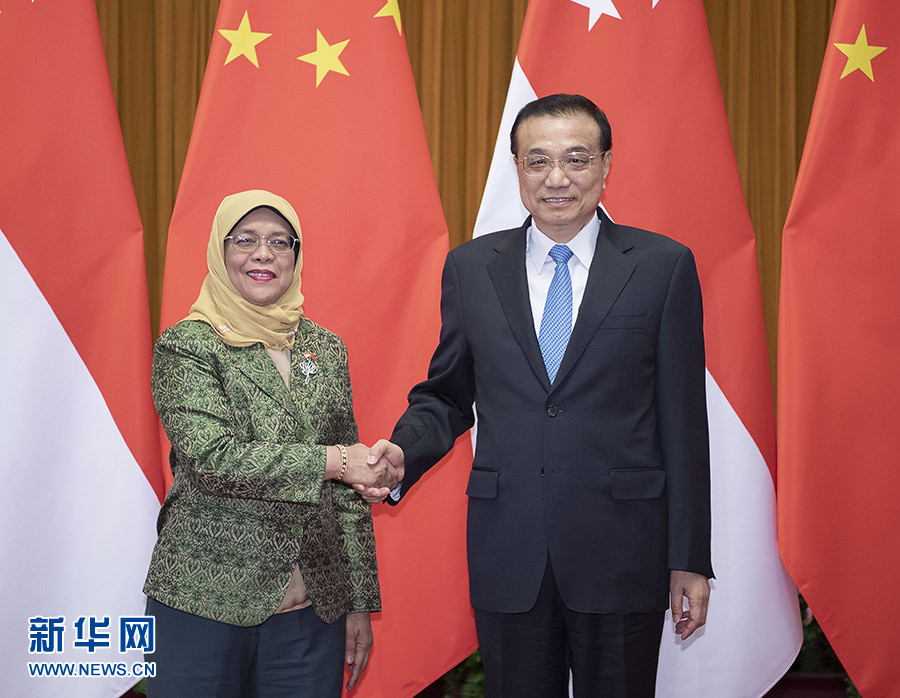 李克強(qiáng)表示,中國(guó)和新加坡隔海相望,兩國(guó)在相互尊重、平等合作、互利共贏基礎(chǔ)上發(fā)展了良好關(guān)系,給兩國(guó)人民帶來(lái)福祉。新加坡是個(gè)多元文明構(gòu)成的社會(huì)。昨天,習(xí)近平主席同總統(tǒng)女士舉行了富有成果的會(huì)見,展望了兩國(guó)關(guān)系廣闊前景。中方愿同新方發(fā)揮各自優(yōu)勢(shì),保持良好合作勢(shì)頭,繼續(xù)挖掘合作潛力,將“一帶一路”倡議同新方發(fā)展戰(zhàn)略相銜接,推動(dòng)中國(guó)西部地區(qū)和新加坡對(duì)接,扎實(shí)推進(jìn)“陸海新通道”、第三方市場(chǎng)、智慧城市、技能培訓(xùn)等領(lǐng)域合作。希望雙方推進(jìn)文明和文化的交流,密切人員往來(lái),夯實(shí)兩國(guó)友好的民意基礎(chǔ),促進(jìn)雙邊關(guān)系繼續(xù)向前發(fā)展。中方愿同新方共同應(yīng)對(duì)全球性挑戰(zhàn),為世界和地區(qū)的和平穩(wěn)定發(fā)展作出貢獻(xiàn)。