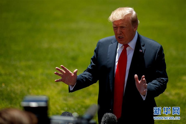 5月24日,美國總統特朗普在華盛頓白宮對媒體講話。美國總統特朗普24日說,美國將向中東增兵約1500人,主要承擔“防御任務”。新華社發(沈霆 攝)
