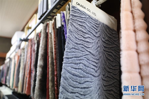 這是5月17日在日本和歌山縣岡田織物公司內拍攝的人造毛皮產品。新華社記者 杜瀟逸 攝