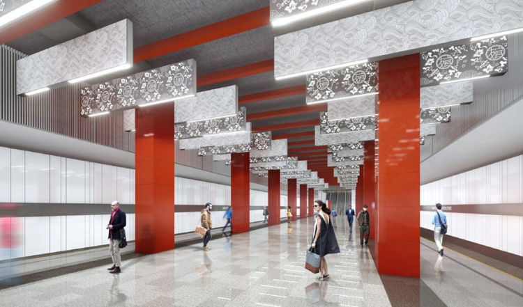 值得一提的是,米丘林大街站未來將以“中國風”形象亮相。屆時,梅花、云紋、團壽、八仙紋、中國紅等元素將為“最美地下宮殿”添一筆中國色彩。