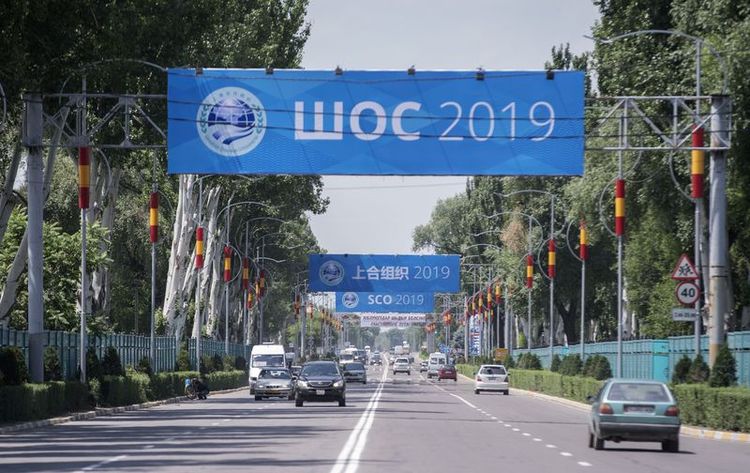 比什凱克瑪納斯國際機場開往市區的公路上,以多種文字標注的上合組織比什凱克峰會橫幅已經掛起。(新華社記者 費茂華 攝)