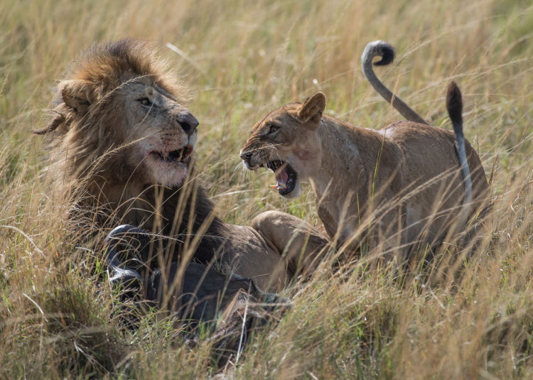 同一個獅群的雄獅之間很少會發生肢體沖突。相反,它們之間非常默契并相互依賴,不僅共同保護獅群免受斑鬣狗、大象和野牛的騷擾,而且共同抵御其他獅群或外來流浪獅的入侵。
