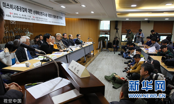 2018年11月29日,韓國最高法院就日本殖民統治朝鮮半島期間被日本三菱重工強征的原勞工遺屬,以及前“朝鮮女子勤勞挺身隊”隊員狀告該公司的2起索賠案作出判決,勒令日本三菱重工支付賠償。(圖片來源:視覺中國)