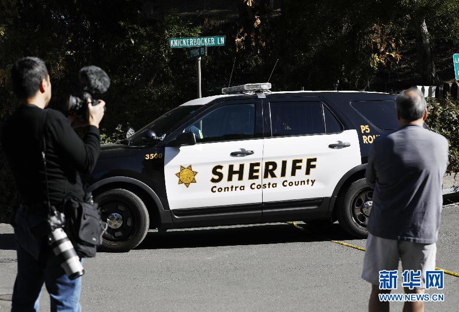 11月1日,在美國加利福尼亞州舊金山灣區北部的康特拉科斯塔縣奧林達,媒體記者在警戒線外采訪。新華社發(李建國攝)