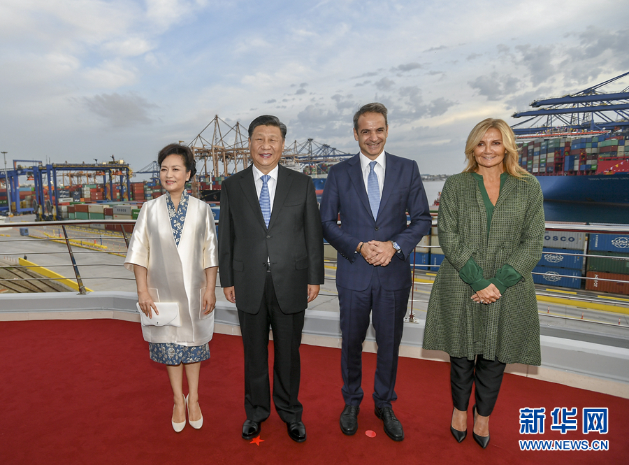 新華社雅典11月11日電(記者霍小光 駱珺 郝薇薇)當(dāng)?shù)貢r(shí)間11月11日,國(guó)家主席習(xí)近平和夫人彭麗媛在希臘總理米佐塔基斯夫婦陪同下,共同參觀中遠(yuǎn)海運(yùn)比雷埃夫斯港項(xiàng)目。