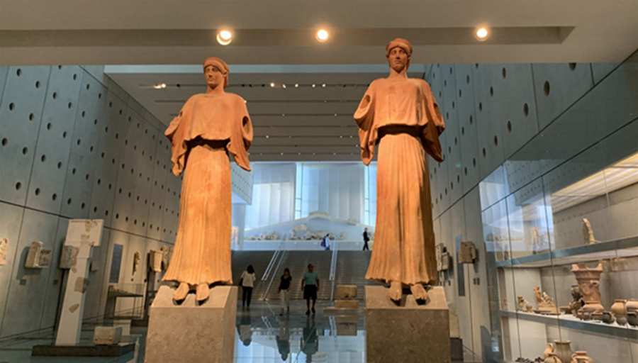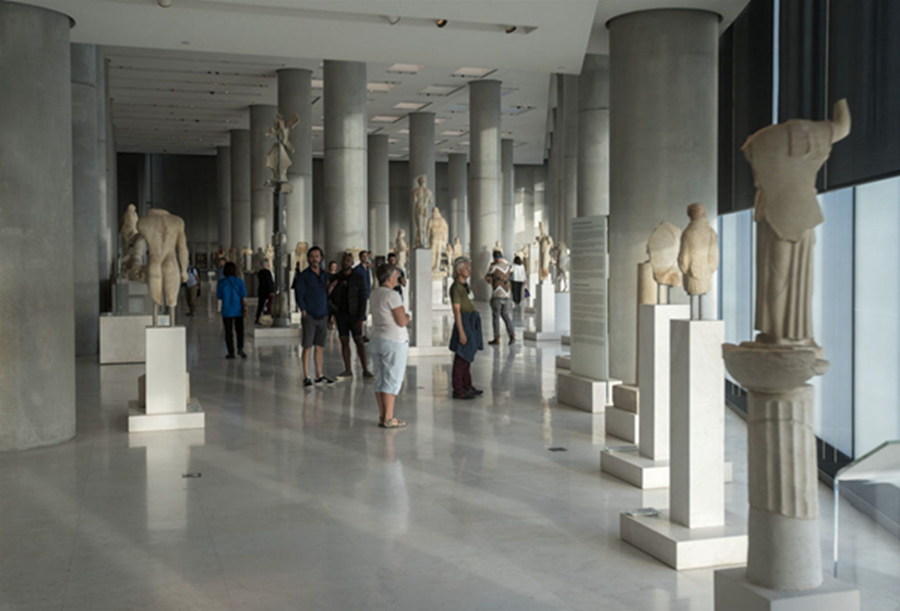 地中海溫暖的陽光透過雅典衛城博物館玻璃幕墻灑入展廳,一座座古希臘神話人物和建筑雕像栩栩如生,展示著美和力量,訴說著希臘古典藝術的燦爛輝煌,令人仿佛徜徉于歷史長河里,沉醉在文明畫卷中。