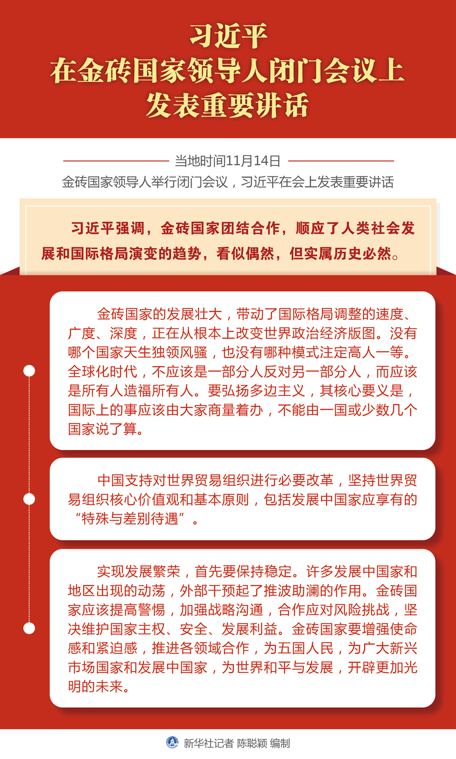 圖表:習(xí)近平在金磚國家領(lǐng)導(dǎo)人閉門會(huì)議上發(fā)表重要講話 新華社記者 陳聰穎 編制