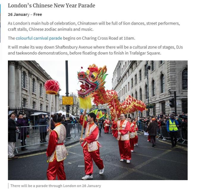 英國(guó)倫敦將于1月26日舉行舞龍舞獅的街頭表演。來(lái)源:英國(guó)metro都市地鐵報(bào)紙網(wǎng)站報(bào)道截圖