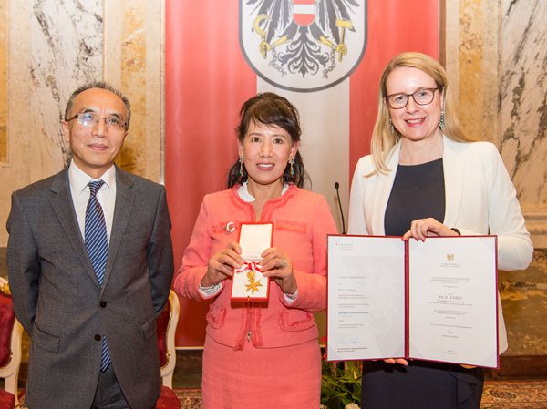 楊麗博士是2002年來第一位獲此殊榮的華人,也是獲得此項勛章的第一位華人女性。奧地利經濟部長瑪加麗特·施拉姆伯克親自向她頒發勛章和榮譽證書。中國駐奧地利大使李曉駟出席頒獎儀式。