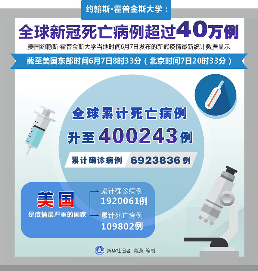 約翰斯·霍普金斯大學:全球新冠死亡病例超過40萬例-新華網