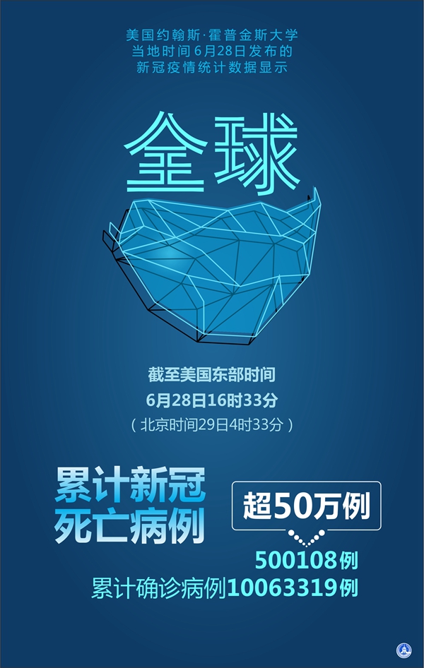 新華社北京6月29日電? 28日全球疫情簡報(bào):美機(jī)構(gòu)統(tǒng)計(jì)全球累計(jì)新冠病例超1000萬 死亡超50萬