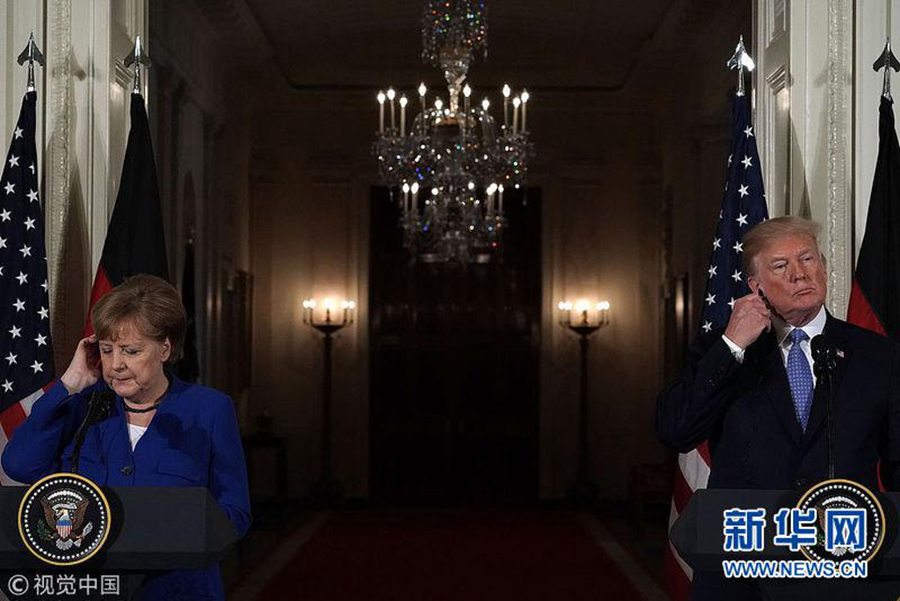 2018年4月27日,美國華盛頓,美國總統特朗普會見德國總理默克爾。(圖片來源:視覺中國)