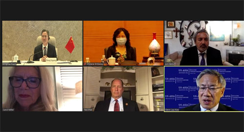 這次視頻對話由中國人民外交學會和美國美亞學會合作舉辦。上述兩機構(gòu)負責人等出席了對話。