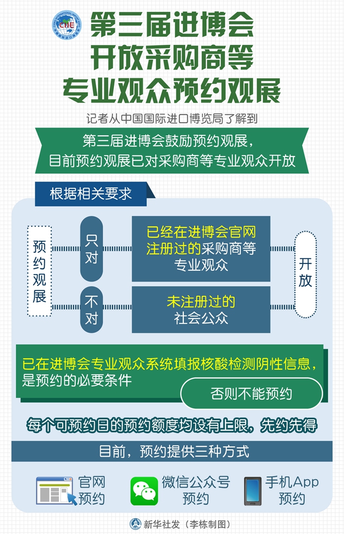 根據(jù)相關(guān)要求,預(yù)約觀展只對已經(jīng)在進(jìn)博會官網(wǎng)注冊過的采購商等專業(yè)觀眾開放,不對未注冊過的社會公眾開放。
