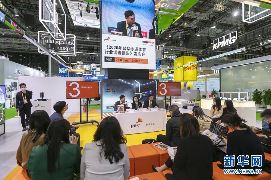 11月5日,普華永道在第三屆進博會服務貿易展區現場直播《2020年普華永道體育行業調查報告》發布會。新華社記者 王翔 攝