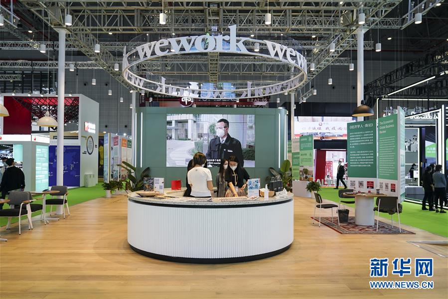 11月5日拍攝的第三屆進博會服務貿易展區wework展臺。 新華社記者 張豪夫 攝