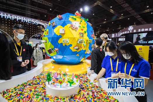 樂高玩具拼成的“地球”在樂高展區特別引人注目。新華網 發