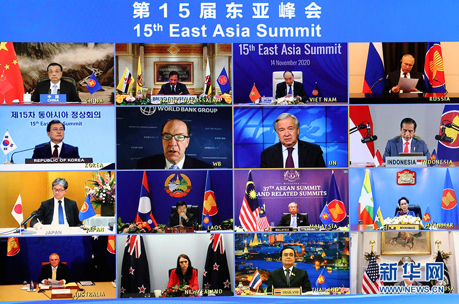 新華社北京11月14日電 國務院總理李克強14日晚在人民大會堂出席第15屆東亞峰會。東盟十國領導人以及俄羅斯總統普京、韓國總統文在寅、日本首相菅義偉、澳大利亞總理莫里森、新西蘭總理阿德恩、印度外長蘇杰生、美國總統國家安全事務助理奧布萊恩等與會。越南總理阮春福主持會議。會議以視頻形式舉行。