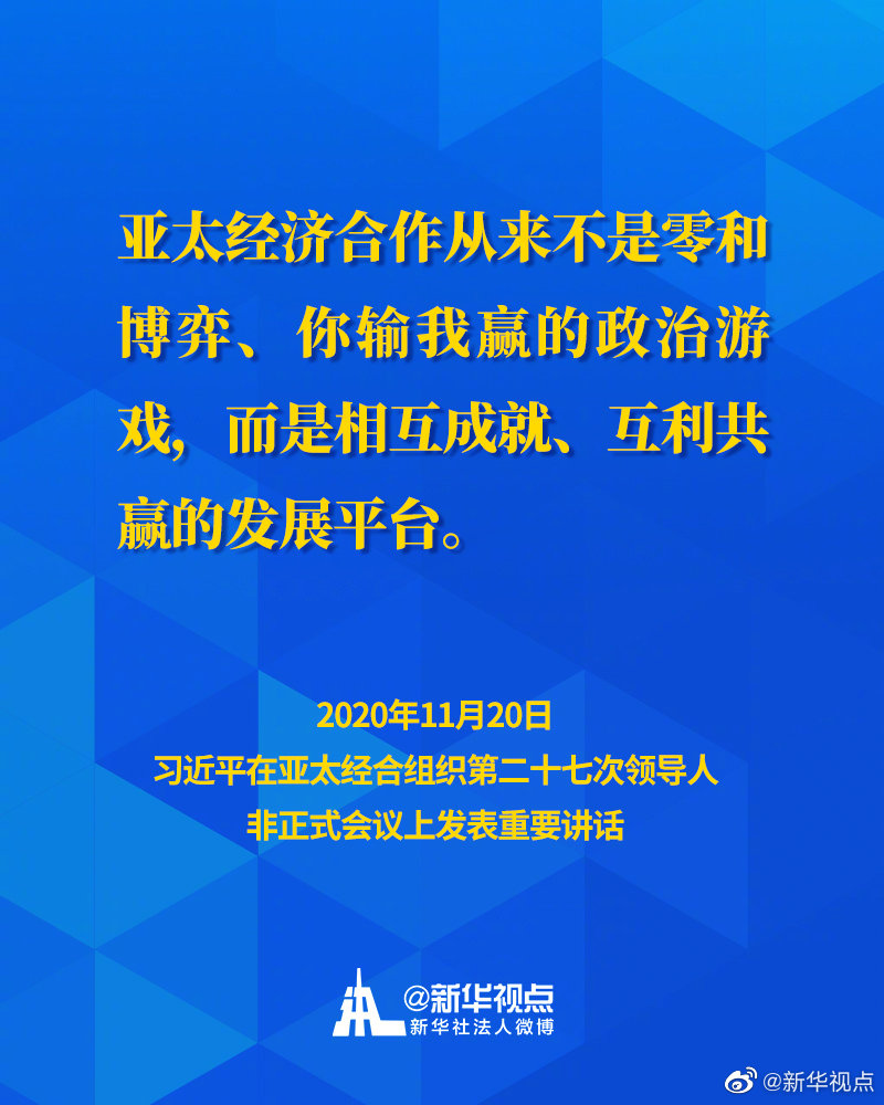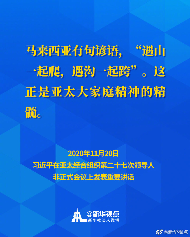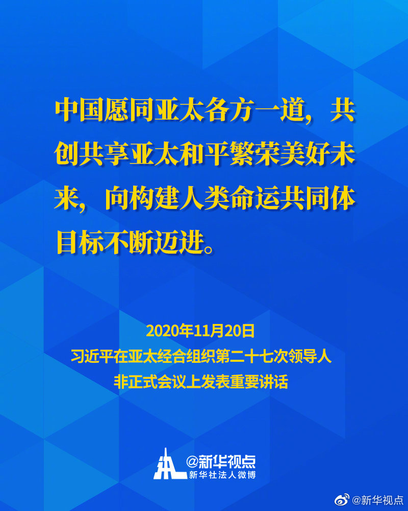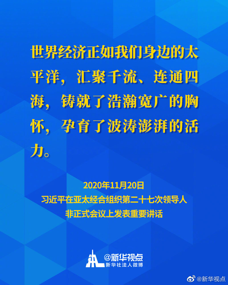 11月20日,國家主席習(xí)近平在亞太經(jīng)合組織第二十七次領(lǐng)導(dǎo)人非正式會(huì)議上發(fā)表重要講話。一起來看習(xí)主席的APEC金句↓↓