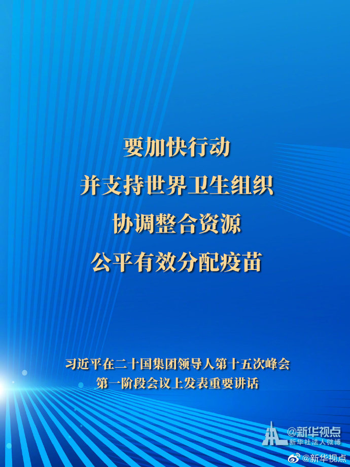 11月21日,國家主席習近平在二十國集團領導人第十五次峰會第一階段會議上發表重要講話。一起來看習主席的G20金句。