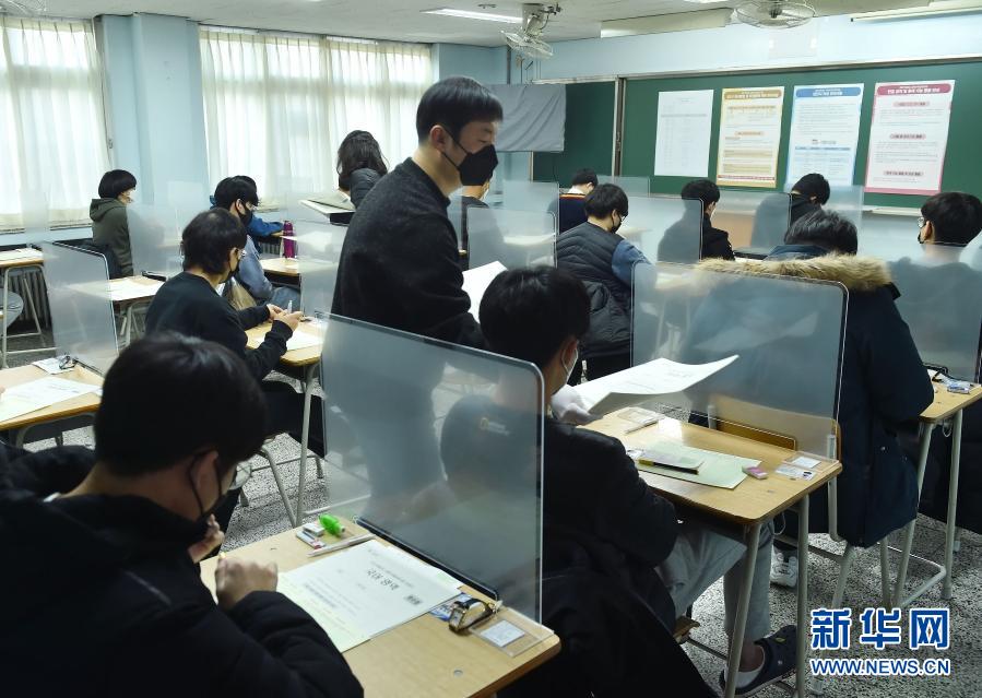 12月3日,在韓國(guó)京畿道城南市,監(jiān)考人員在某考點(diǎn)向考生分發(fā)試卷。新華社發(fā)(李相浩 攝)