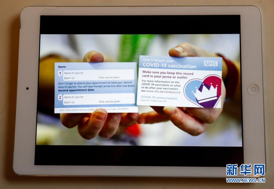 這是12月8日在英國倫敦拍攝的顯示新冠疫苗接種卡的電腦屏幕。