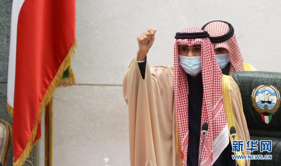 12月15日,在科威特首都科威特城,科威特埃米爾納瓦夫(前)準備在新議會就職典禮上發言。新華社發(阿薩德攝)