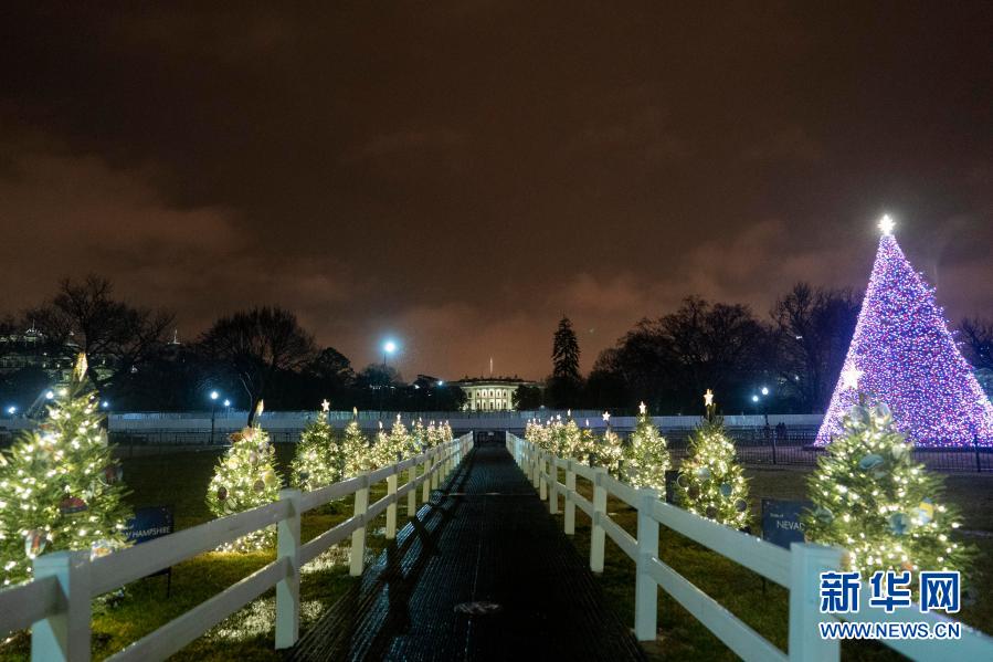 這是12月24日在美國華盛頓拍攝的白宮和國家圣誕樹。