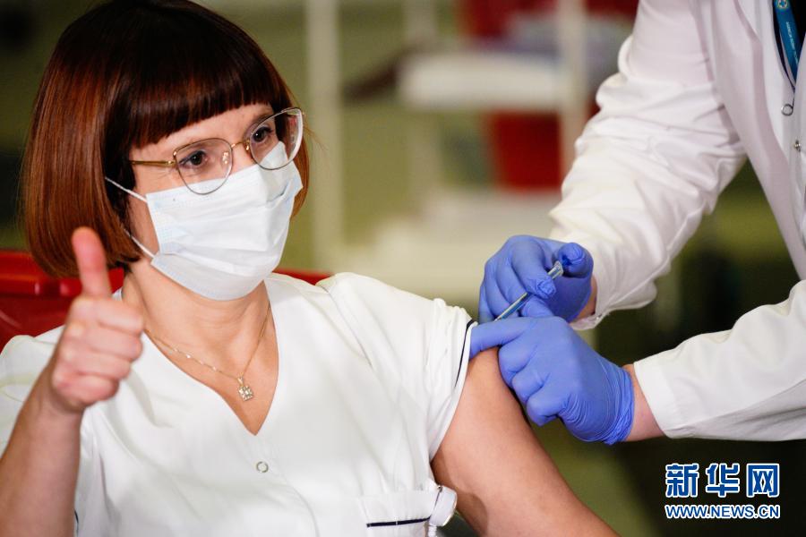 12月27日,在波蘭首都華沙一家醫院,一名護士接種新冠疫苗。