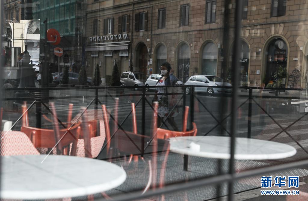 4月3日,一名女子走過意大利羅馬一家關閉的餐館。