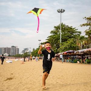 4月9日,兒童在泰國芭堤雅海灘上放風箏。