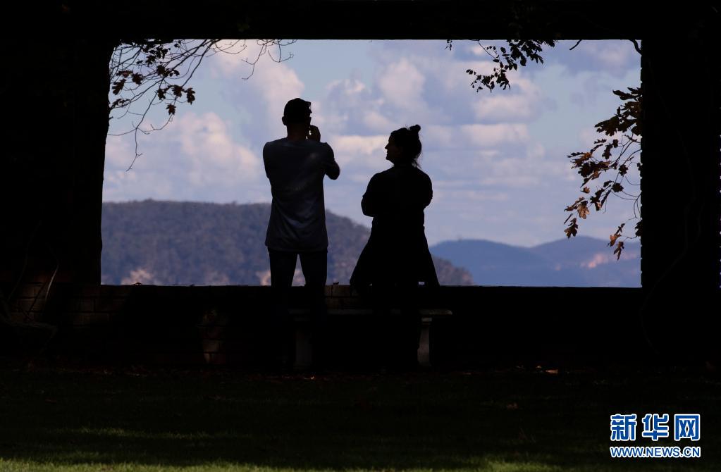 5月3日,兩位游客在澳大利亞悉尼西部藍(lán)山地區(qū)的一個(gè)觀景臺(tái)駐足。