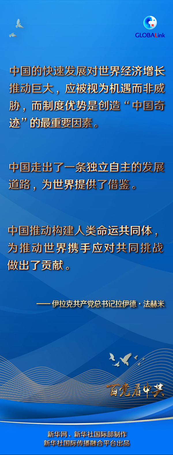 在中國共產黨成立100周年之際,法赫米對中共取得的偉大成就致以誠摯祝賀。他表示,在中共帶領下,中國在眾多領域實現了大跨步發(fā)展。