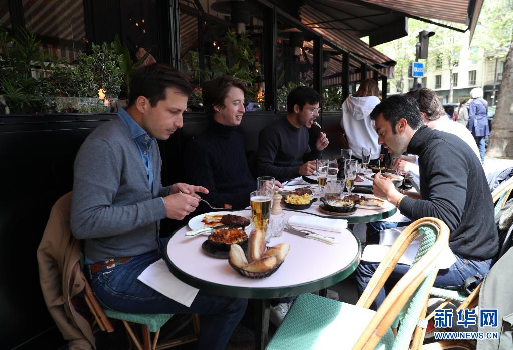 5月19日,人們在法國巴黎一家餐廳用午餐。