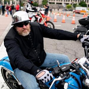 5月30日,在美國首都華盛頓,參加“滾雷”摩托車大游行的車輛駛過街頭。