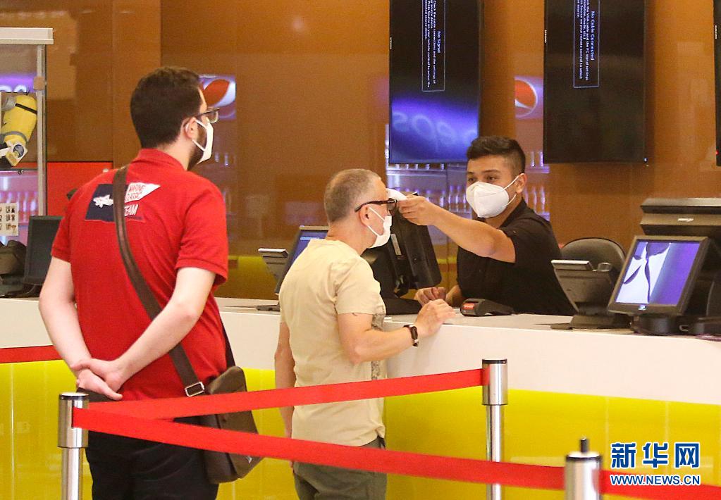 6月2日,一名男子在黎巴嫩貝魯特的一家電影院接受體溫檢測。