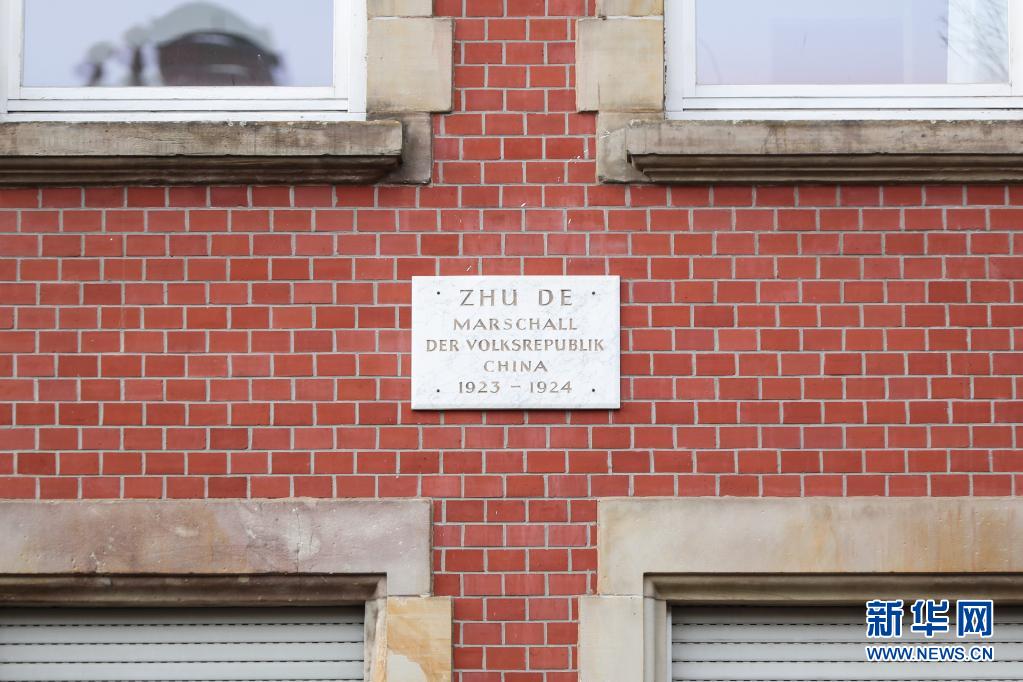 這是2021年4月16日在德國哥廷根拍攝的普朗克街3號朱德故居,正墻上掛著一塊精致的大理石紀念牌匾,上面用德語鐫刻著“朱德,中華人民共和國元帥”等字樣。 新華社記者 單宇琦 攝